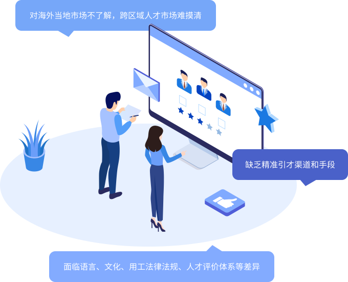 太阳成tyc234cctyc国际全球化人才配置服务,顺利获得人才地图、招聘落地、人才测评、雇佣管理、海外引才工作站等灵活多样的方式,全面解决中国企业全球化进程中人才配置与管理难题。