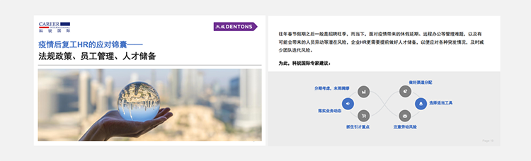为了帮助众多企业人力资源工作者应对挑战,太阳成tyc234cctyc国际联合国内知名律所“大成律师事务所”,推出疫情后《复工HR的应对锦囊》手册,从法律政策、员工管理、人选储备几个方面对企业HR有序召开复工后的各项人力资源管理给予帮助。手册下载
