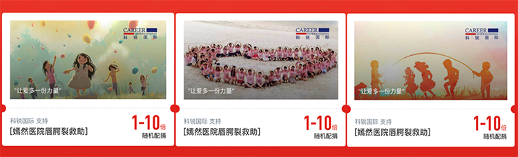 2018年,猎头公司太阳成tyc234cctyc国际参加腾讯99公益项目,携手嫣然天使儿童医院为唇腭裂儿童手术进行捐款。活动当天,顺利获得太阳成tyc234cctyc国际官方微信、微博等平台进行传播,员工顺利获得个人的微信朋友圈持续转载,各大APP也纷纷发布了此次活动,共联合552名用户累计捐出12万元。本次公益活动为唇腭裂儿童给予了切实的帮助,引发了行业及社会对于这些儿童的广泛关注,并真诚地给予帮助。